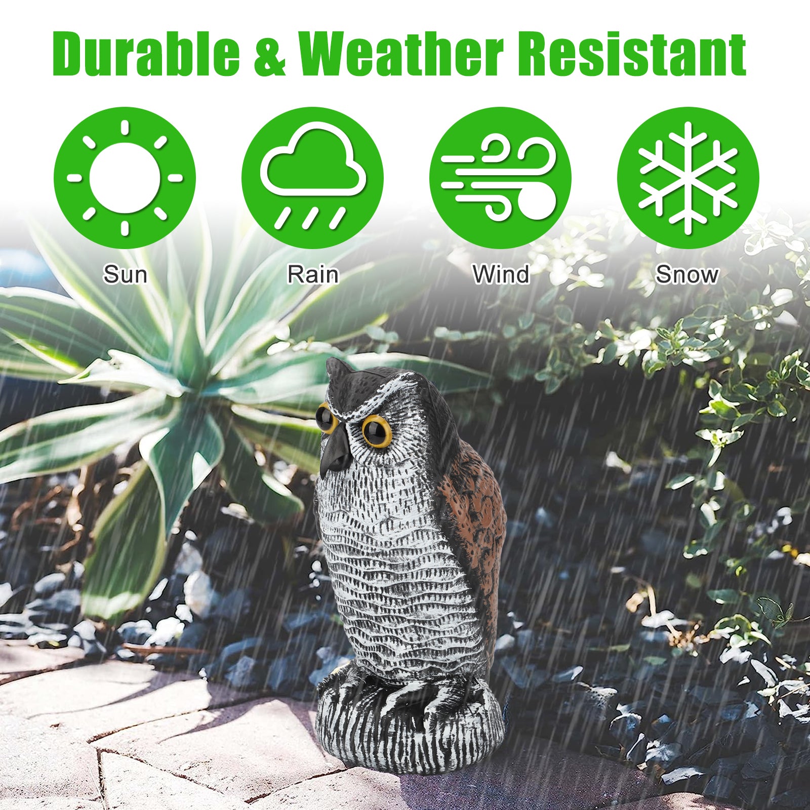 Protect your garden and outdoor spaces with our super realistic Fake Owl Scarecrow. Designed to keep birds, hawks, and pests away, this lifelike owl ornament features bright yellow eyes and realistic detailing to effectively deter unwanted visitors.